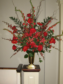 This is a church arrangement for a May wedding.